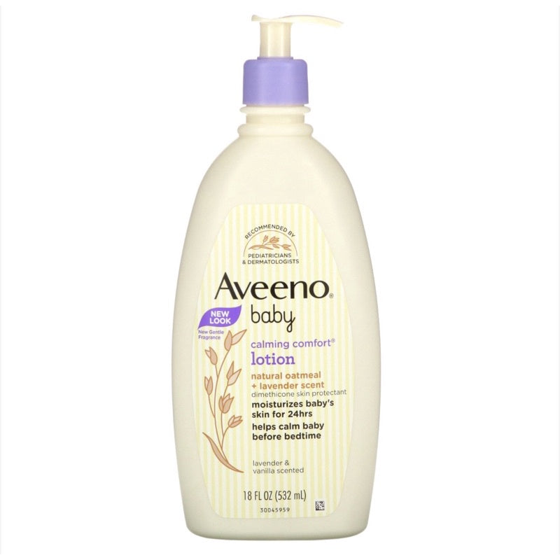 Help your baby relax with this pediatrician-recommended baby lotion. Made with lavender and vanilla scents, AVEENO® Baby CALMING COMFORT® Lotion is non-greasy and helps protect and moisturize baby’s sensitive skin for 24 hours. It’s made with natural Colloidal Oatmeal to keep your baby’s skin feeling soft and smooth.