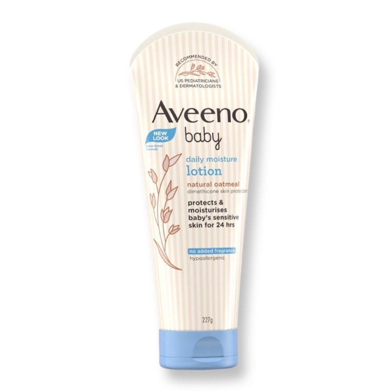AVEENO® Baby Daily Moisture Lotion contains natural colloidal oatmeal blended with rich emollients to soothe your baby's delicate, dry skin. This naturally nourishing, non-greasy formula absorbs quickly, moisturizes for a full 24 hours, and it contains no drying alcohols and won't clog pores. It is hypoallergenic and fragrance-free so it won't irritate baby's sensitive skin. It's designed to be gentle enough for newborns. Fragrance-free, paraben-free, phtalate-free, hypoallergenic, and steroid-free.