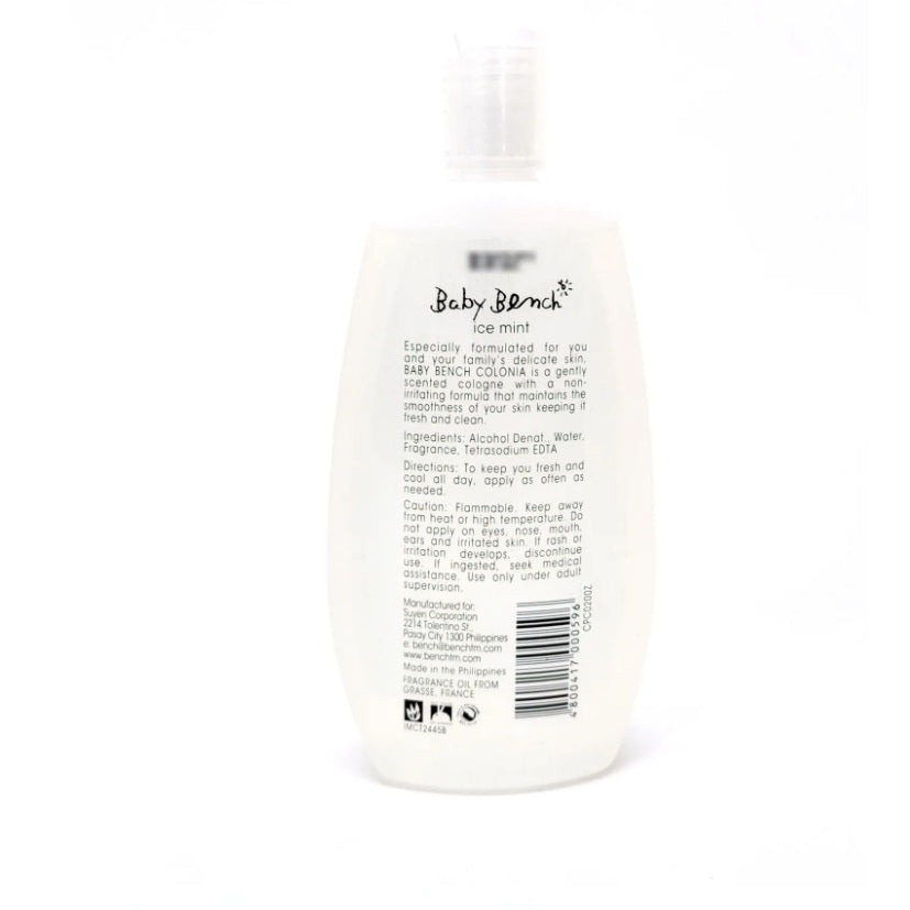Especially formulated for you and your family's delicate skin, Baby Bench Colonia is gently scented and has a non-irritating formula