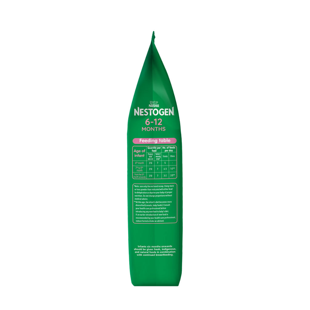 "The new NESTLÉ NESTOGEN® TWO , the only one with probiotic L. COMFORTIS® is scientifically proven to strengthen tummies for your child's digestive health. It has probiotics that ensures less constipation, reduced intensity and frequency of abdominal pains and even acute diarrhea. It has 3x more DHA that may support your child's brain development. It is a good source of important nutrients such as Protein, Niacin, Vitamin R, Vitamin B6, Iron, Iodine, Magnesium. With the right amount of combined nutrients, the new NESTLÉ NESTOGROW® TWO supports the digestive health, growth and development of children aged 6 to 12 months old. Disclaimer: Breastmilk is the best for babies up to 2 years of age and beyond. There is no substitute for breastmilk."