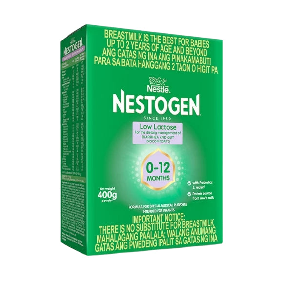 - NESTOGEN Low Lactose 0-12 months is an infant formula for Special Medical Purpose intended for infants from 0-12 months old.
