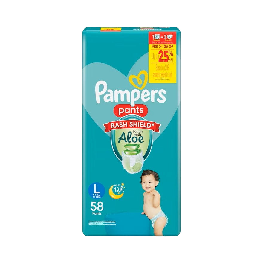 Try PAMPERS BABY-DRY PANTS and get Longer-Lasting Protection with Rash Shield and Lotion with Aloe!