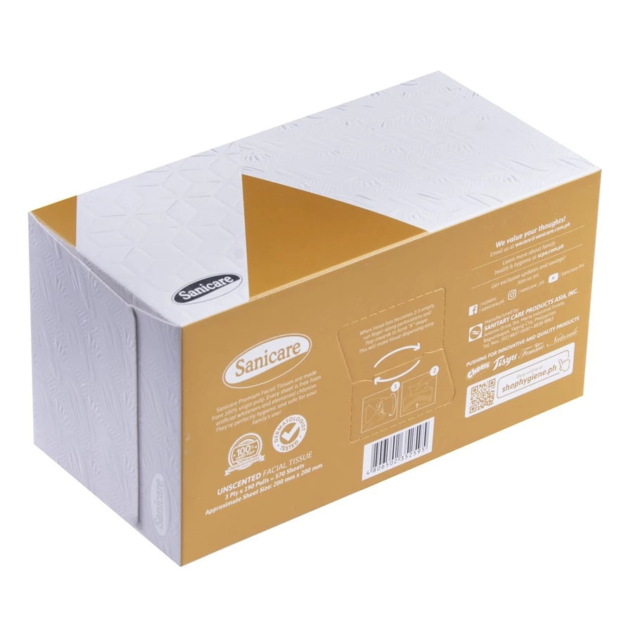 Sanicare Premium Facial Tissues are made from 100% virgin pulp, with