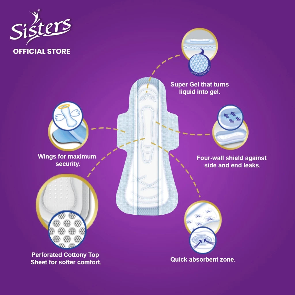 Sisters Sanitary Napkin Net Side (Night-use) 8 Pads