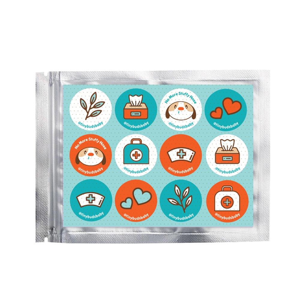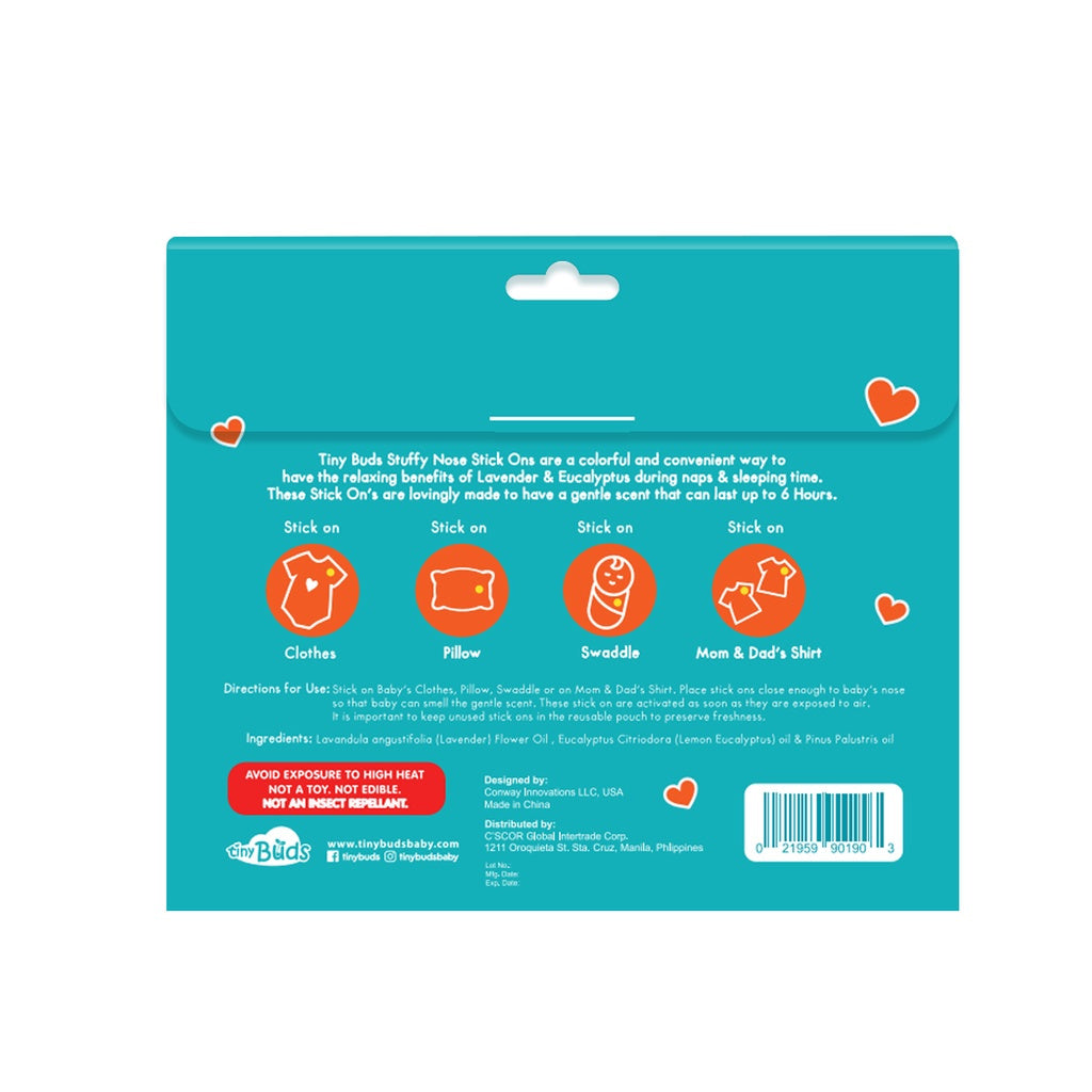Tiny Buds Stuffy Nose Stick Ons are colorful and convenient way to have the benefits of minty eucalyptus when babies have stuffy noses. These Stick On's are lovingly made to have a gentle scent that can last up to 6 Hours.